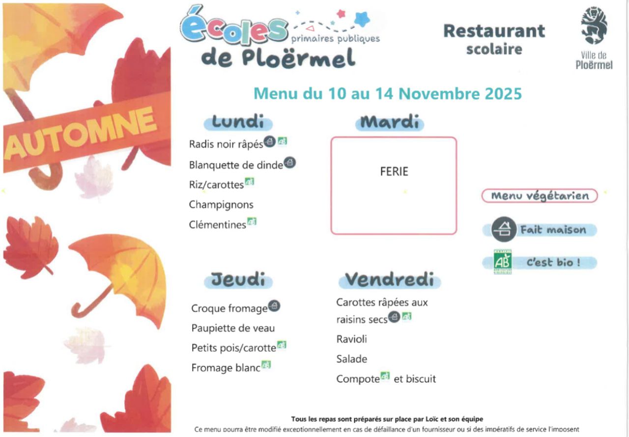 Menu du 6 octobre au 10 octobre - Roll-pred d'ar 6 betek an 10 a viz Here