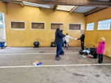 Pas de chance pour eux, c'était le seul jour de pluie de la semaine !!! Ils ont courageusement tenu, mais rapatriement à 11h au lieu de 11h30 car l'averse sévissait.